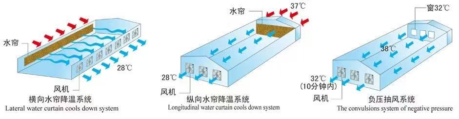 De afzuigventilator en het koelkussen worden aan de tegenoverliggende muur geïnstalleerd, de grote negatieve druk, de hete lucht wordt buiten de kas/pluimveehouderij geëxtraheerd, het koelkussen verdampt en er komt steeds meer koude lucht binnen. Het zal dus een betere koelfunctie zijn.